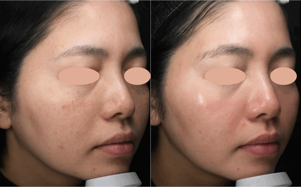 こちらはセラピューティックに加えてシミ取りレーザーとホクロ除去レーザーも行っております症例です。