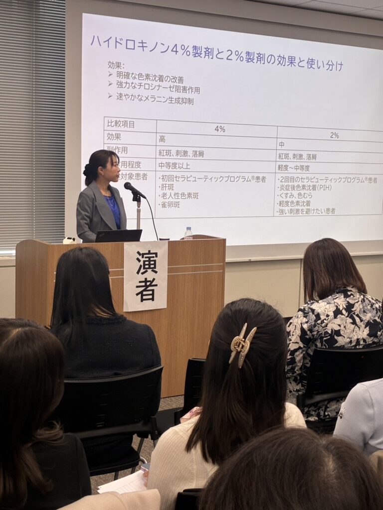 そして新たに加わったハイドロキノン2%と従来の4%の使い分けについてお話ししました!