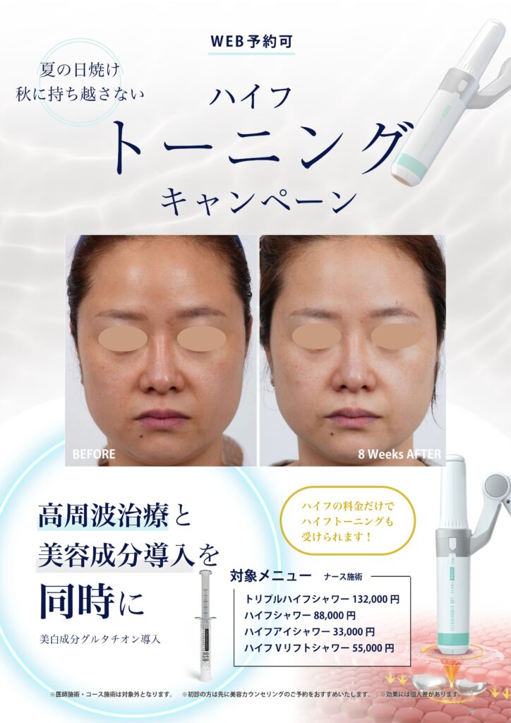 🎉 特典:オプションメニューの「ハイフトーニング(美白成分導入)」が無料で同時施術🎁