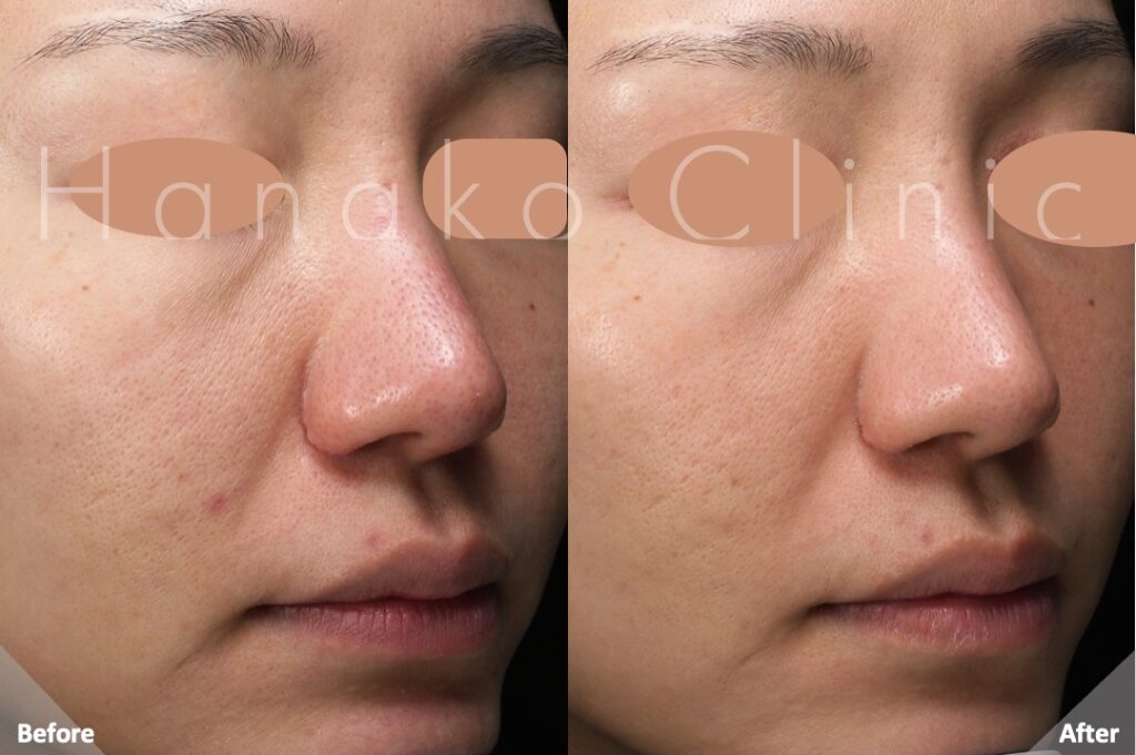 ダメージを受けた組織が新しく生まれ変わる過程で、真皮層のコラーゲンが生成されます。これにより、セルフケアでは太刀打ちできないクレーター状のニキビ跡や開いた毛穴を、皮膚の再生とともに滑らかに整えていきます。