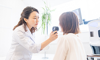 - 看護師によるカウンセリング(脱毛カウンセリング/無料)で患者様一人ひとりの肌の状態をチェックします。脱毛以外にもお悩みがある場合は、医師によるカウンセリングも行っておりますのでお気軽にお伝えください。また、患者様が未成年の場合は医師がカウンセリング(ドクターカウンセリング/5,500円)を行い、保護者の方にも一緒にカウンセから施術まで同席いただきます。