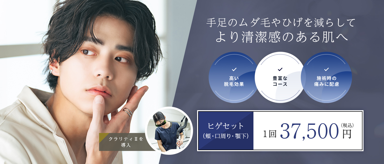 医療資格者(看護師)が施術する医療脱毛において、当院では男性向けプランもございます。医療脱毛は照射力が強く、永久脱毛が期待できます。サロン脱毛などと比べて施術回数が少ないため、肌への負担も抑えられます。毛深くて困っている、顎や腕など部分的に脱毛したいなどなどお悩みのかたは、一度当院までご相談ください。