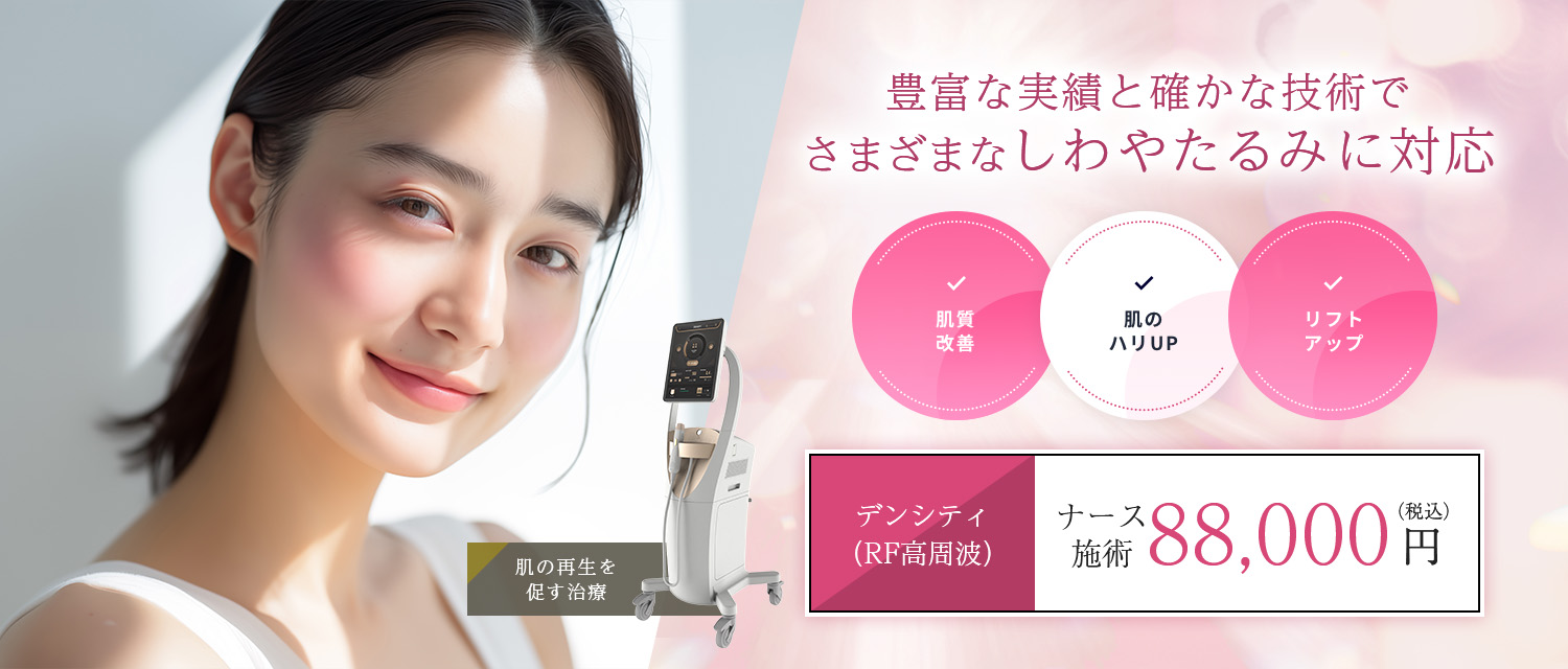 高速でリフトアップを行う、HIFU(高密度焦点式超音波)治療機器のことを言います。顔のリフトアップやタイトニングに加えて、目周りのたるみ改善にも効果が期待できます。